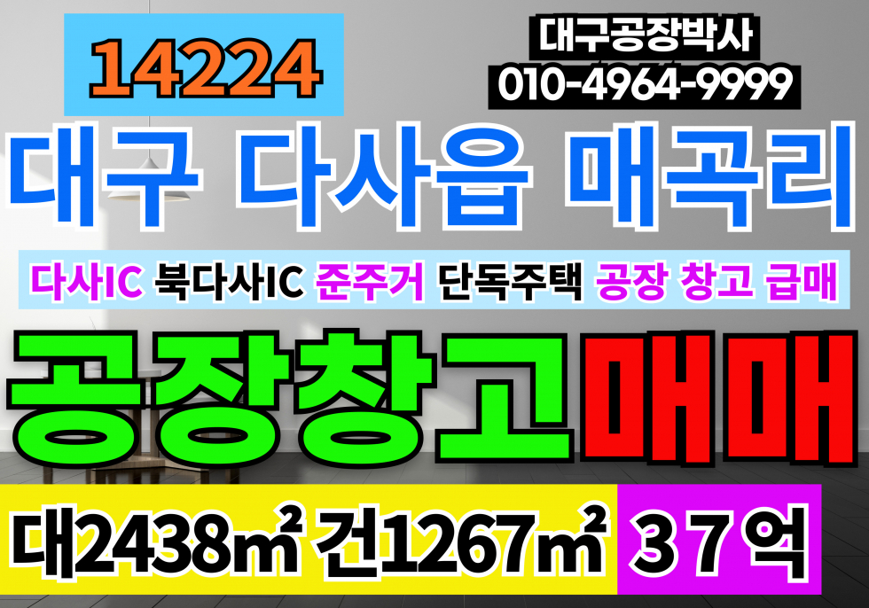 대구공장창고 매매 급매 대구 달성군 다사읍 매곡리 공장 창고