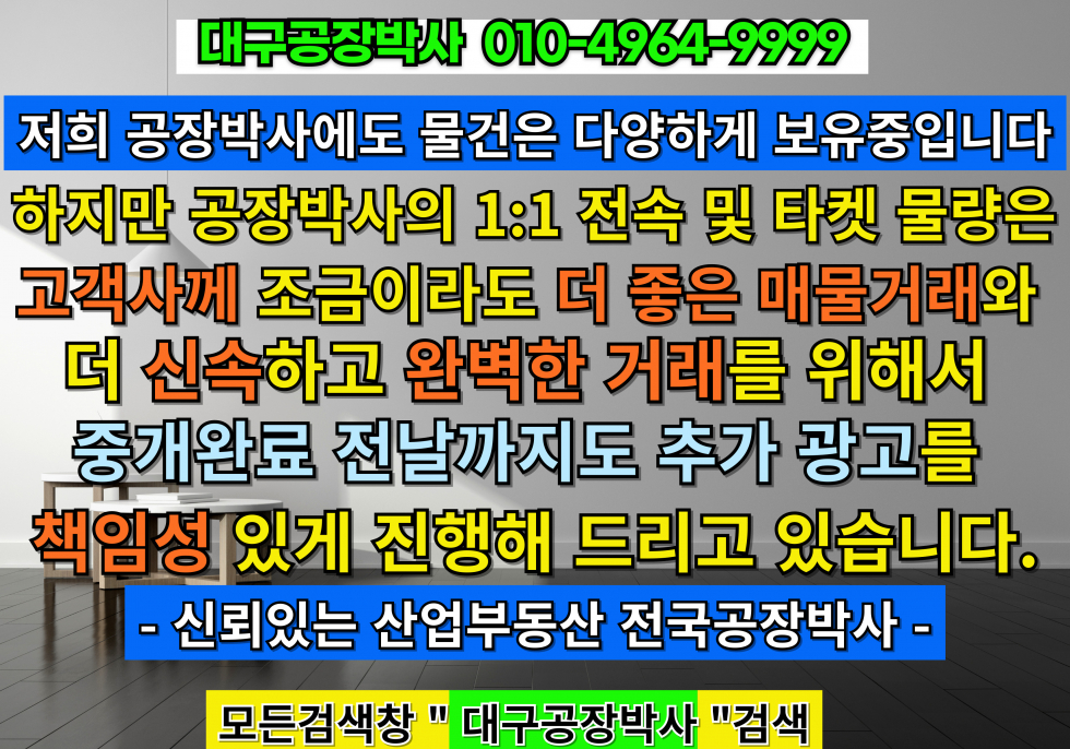 대구공장부지 와 기존 공장 건물있는 매물 찾습니다!