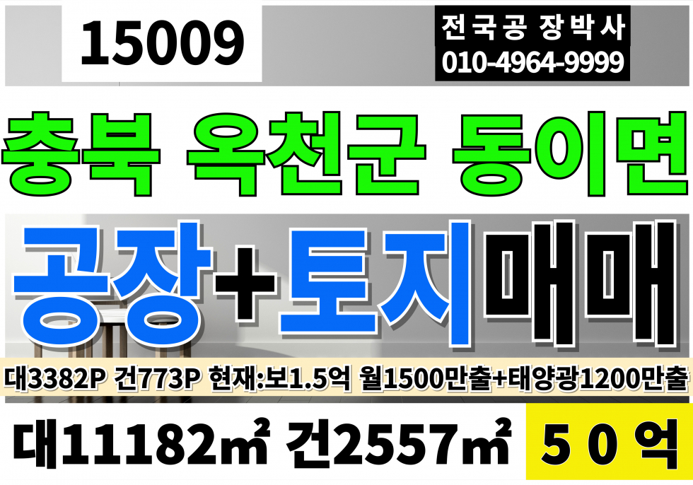 충북 옥천창고매매 공장 토지 땅 급매 금강IC 7분 옥천IC 현재 보1.5억 월1,500만출+태양광1,200만출 총 월2,700만수입