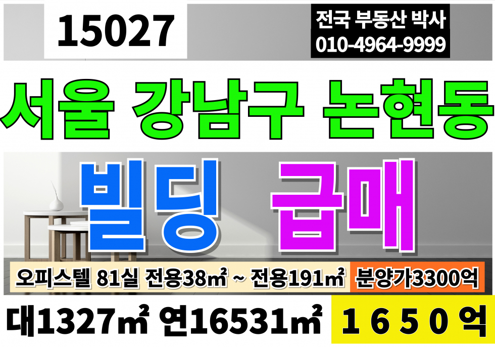 서울빌딩매매 강남빌딩급매 대402P 연5001P 급매1650억 서울시 강남구 논현동 오피스텔 급매 오피스텔 81실