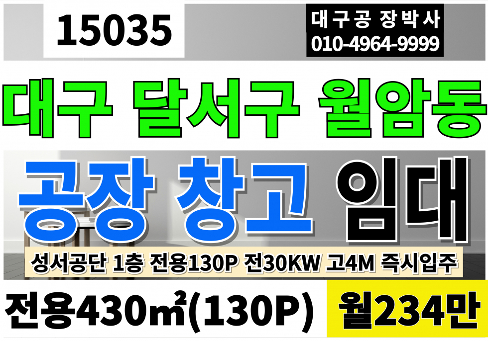 대구공장임대 창고임대 성서공장임대 창고임대 성서공단공장임대 창고임대 1층130P 전기30KW 층고4M