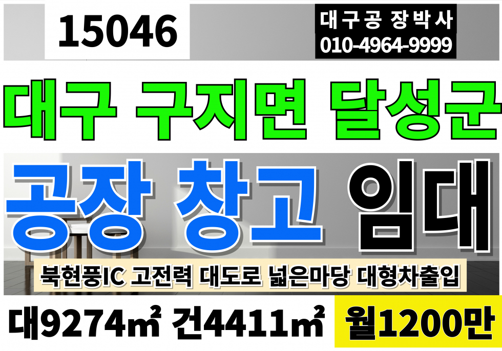 대구공장임대 창고임대 대2805P 건1334P 대구대형공장임대  호이스트다수 고전력 올수리
